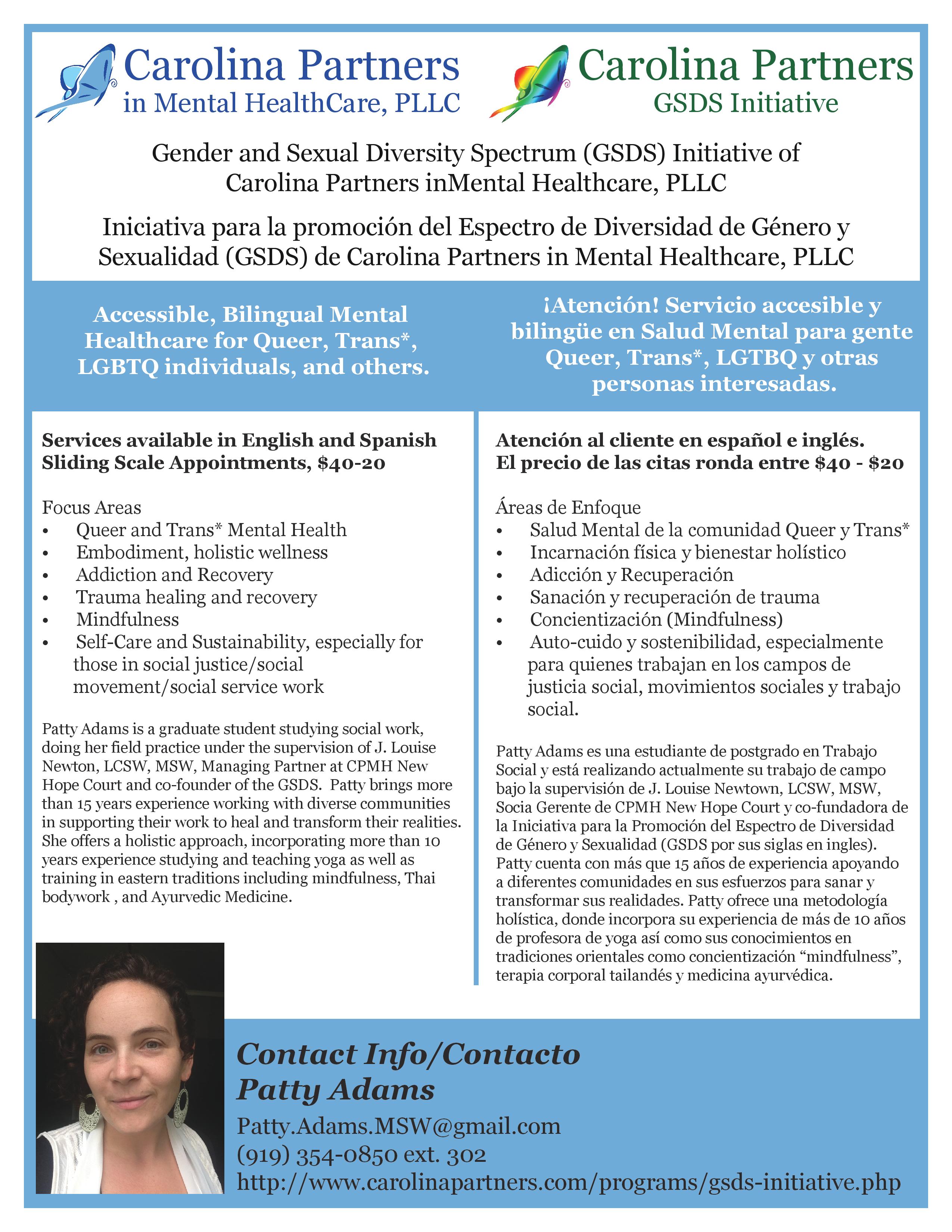 Part of the Gender and Sexual Diversity Spectrum (GSDS) Initiative of Carolina Partners in Mental Healthcare, PLLC