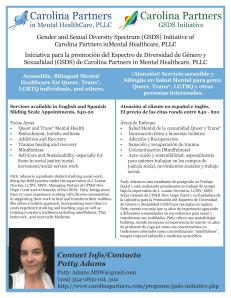 Como parte de la Iniciativa para la promoción del Espectro de Diversidad de Género y Sexualidad (GSDS, por sus siglas en ingles) de Carolina Partners in Mental Healthcare, PLLC