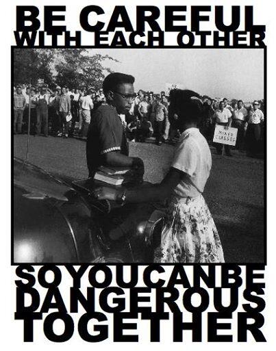 Any organized effort LED BY marginalized folks (or in explicit accountable relationship to them) is a worthy place to engage. You don’t have to take on all the issues at once. An immigrants rights group with intersectional analysis is a great place to get active. A People of Color led cultural organizing group is a great place to engage. A multiracial effort to stop mass incarceration is a great place to plug in. An intersectional queer liberation and economic justice organization is a perfect place to participate. You don’t have to do everything, but you do have to do something. And now. And in relationship with those on the true frontlines of this fight. If there is a real pressing social need out there, odds are a group or effort already exists to address it. Do your homework, find the ones led by the people served by the mission of the group (i.e., a youth liberation organization led by youth, or an immigrants rights group led by undocumented immigrants), and start there.