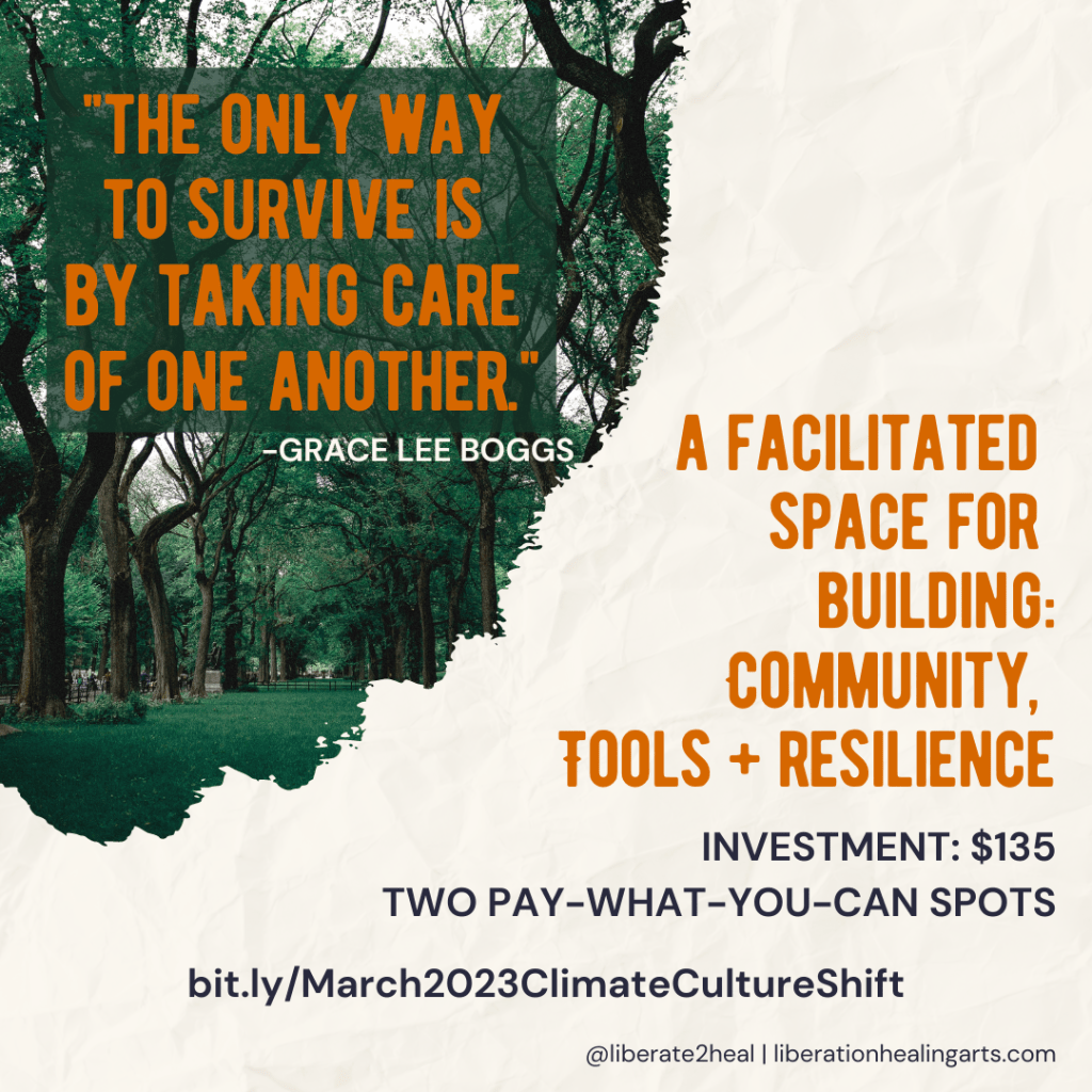 Yet many of us can’t bear to even think about this mammoth reality, much less process our emotions or discern how to take effective action. Most of us are trying to navigate this overwhelming reality alone, even as social science research is clear that we need each other: for community, for connection, and for cultivating the kind of radical hope necessary to stay present and engaged at this crucial moment in our collective history.